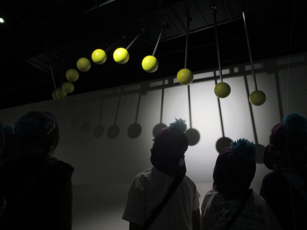 大きな振り子や光や砂鉄を使った不思議現象など、沢山の『不思議』に触れ、とても真剣な表情で観たり、強風に吹かれながらも笑顔になったりと大満足のご様子でした。