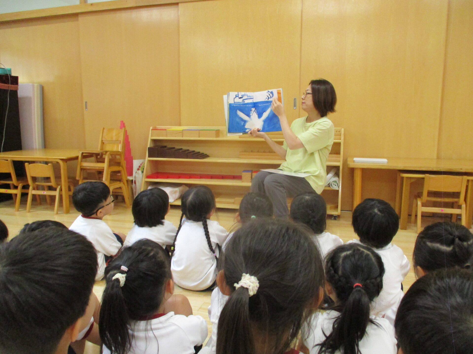 今朝サイレンが鳴ったことを話して、平和が続くようにお祈りをしようと伝え、併せて、「平和とはどんなことだろう?」とみんなで考える時間も設けました。