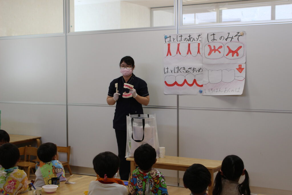 「歯の仕事について」「むし歯にならないためにどんなことに気を付けたら良いか」「歯磨きをする時に気を付けること」「歯の磨き方」など、大切なお話を沢山していただきました。