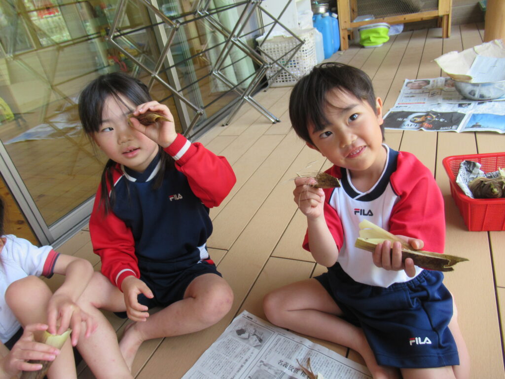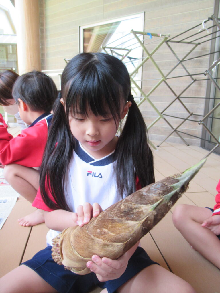たけのこの皮がふわふわしていたり、不思議なにおいがしたり、子ども達の新しい発見がたくさんありました。