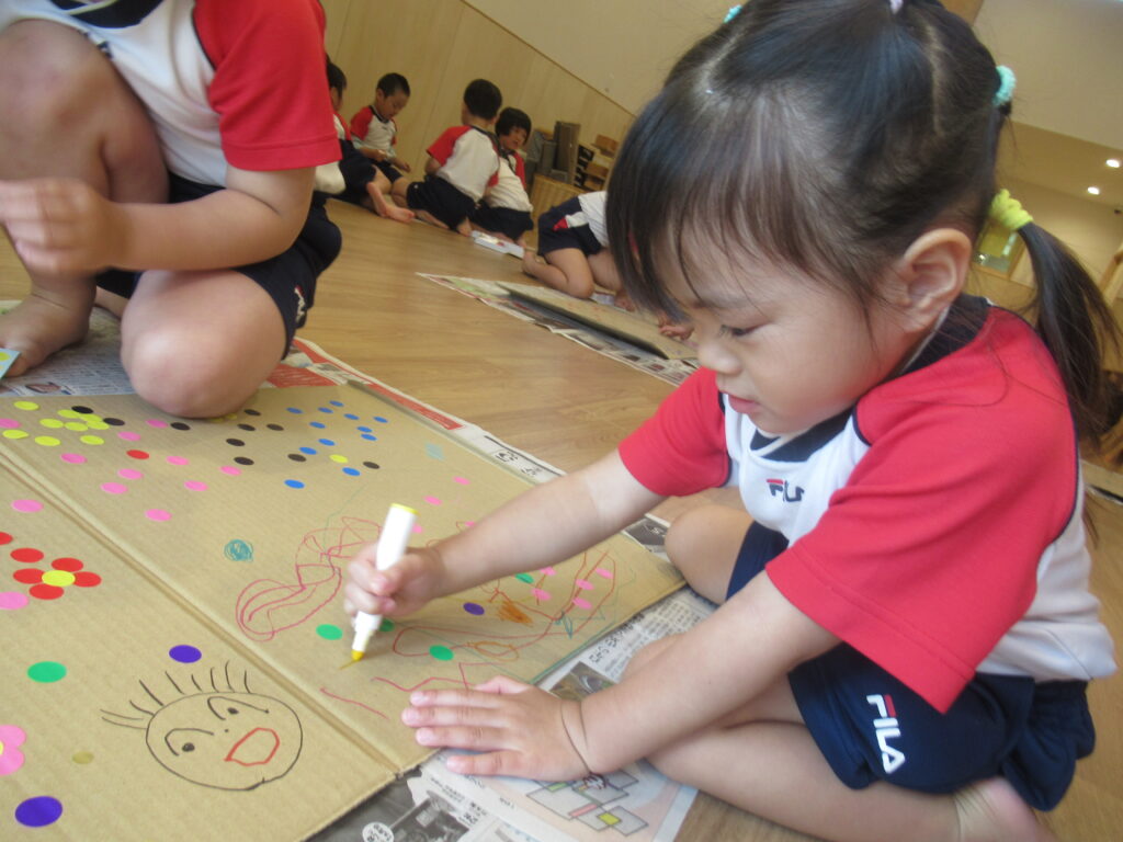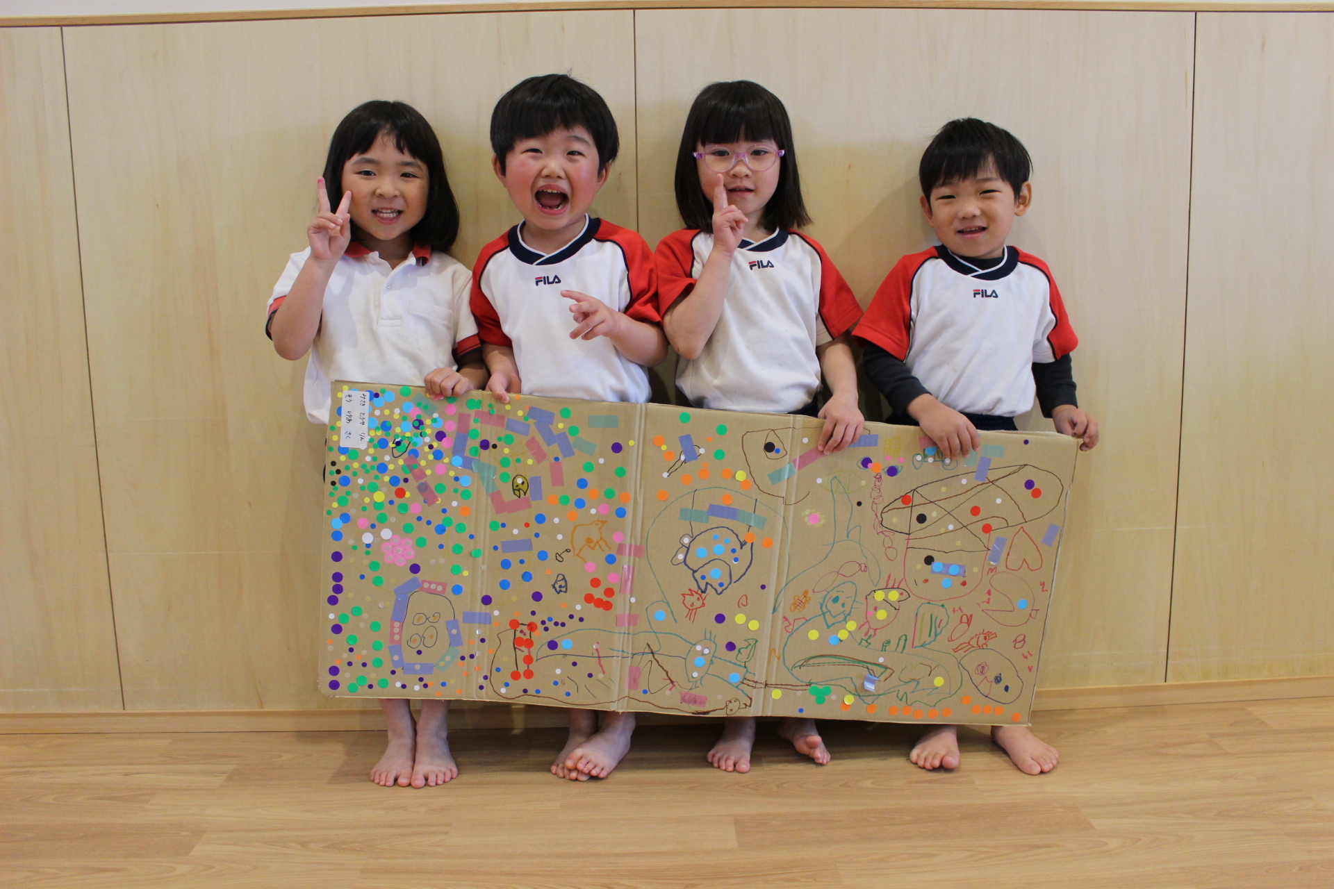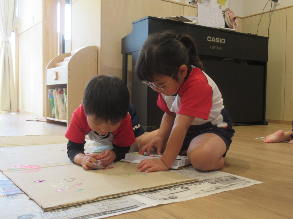 シールを貼ったりお絵描きをしたりして各グループ個性あふれるそりが完成しました。