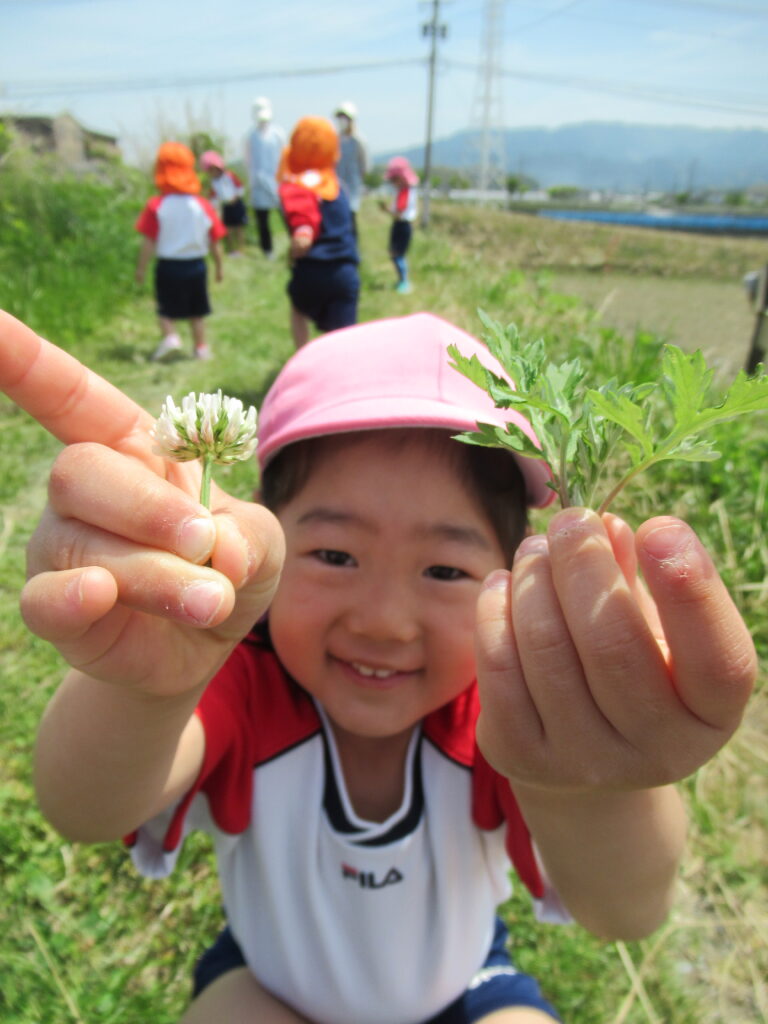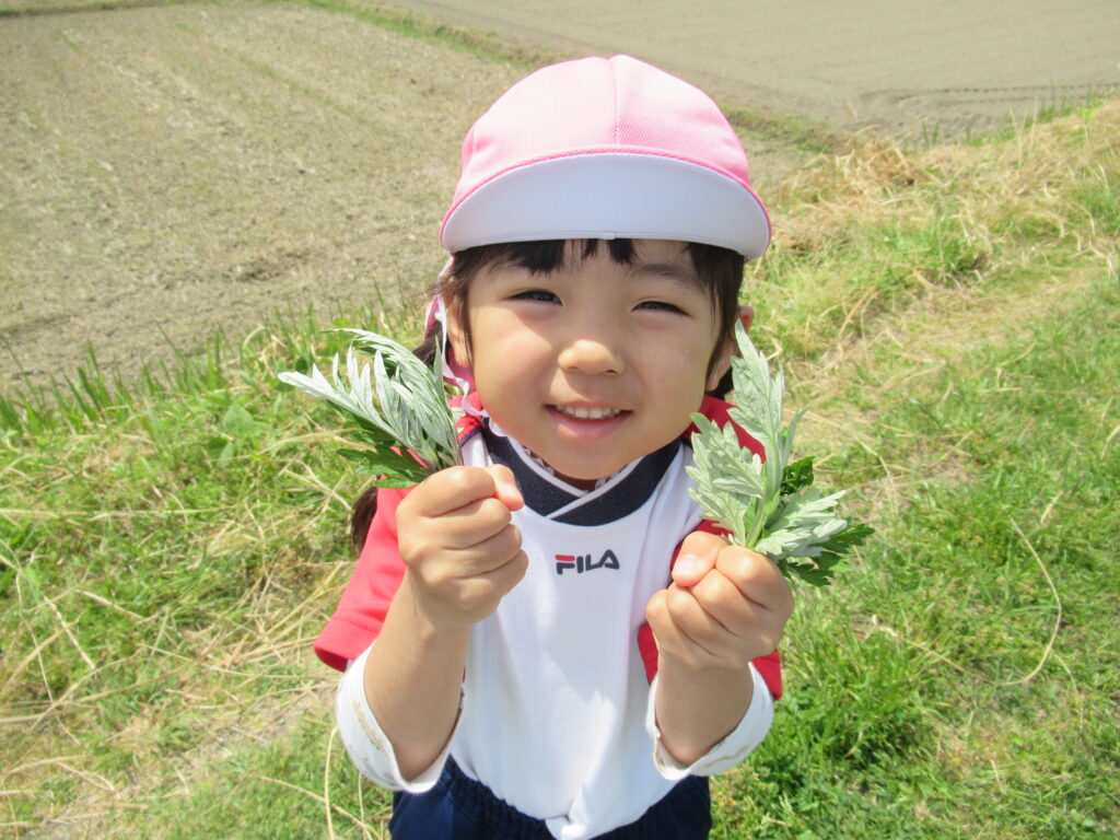 柏餅に使うために、お散歩でよもぎ摘みに出掛けたそら組さん。