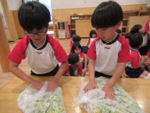 ケーキやアメは、砂糖が入っているから甘いんだね!という話をしていると、「アイスも甘いよね!」と、話が広がりました♪