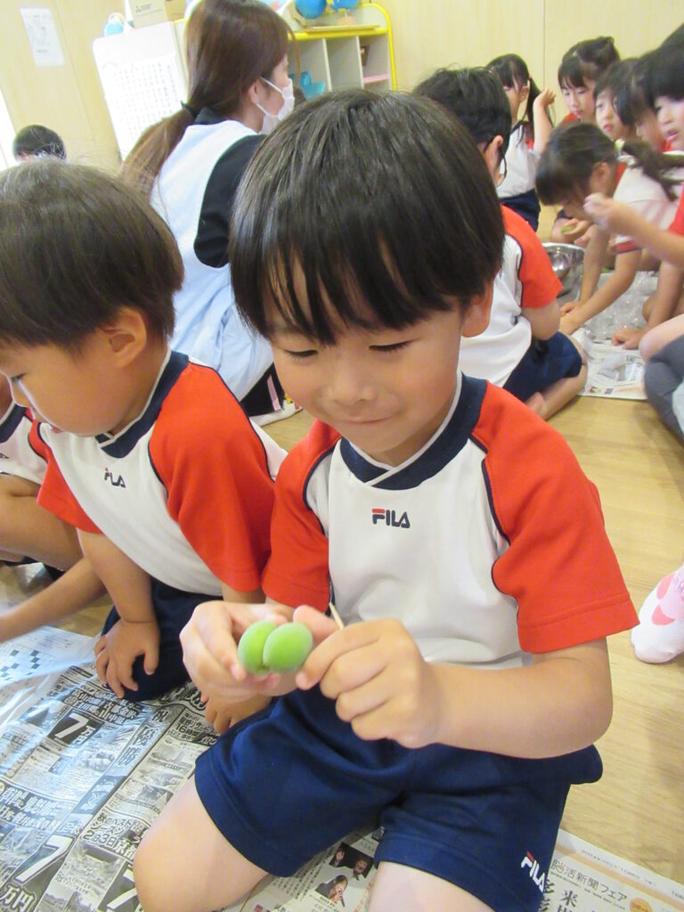 「桃みたいなにおいがする!」「マスカットじゃない?」と梅の甘い香りを楽しんでいましたよ。