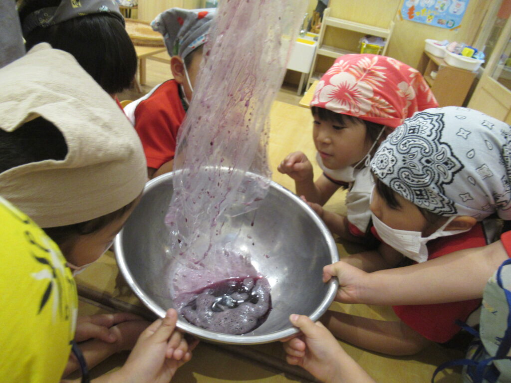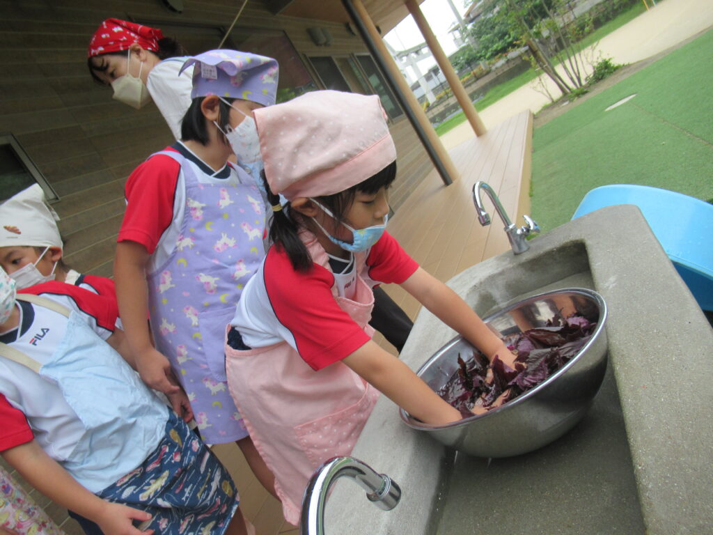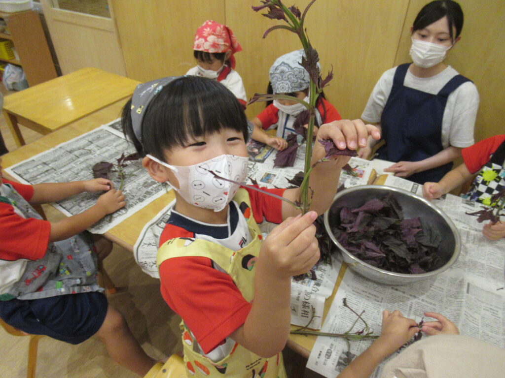 「赤しそなのに黒い汁だ!」「いいにおいがする!」