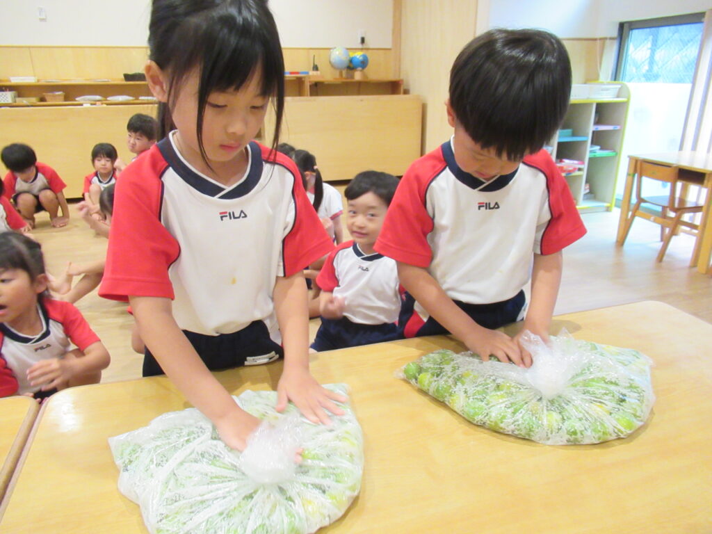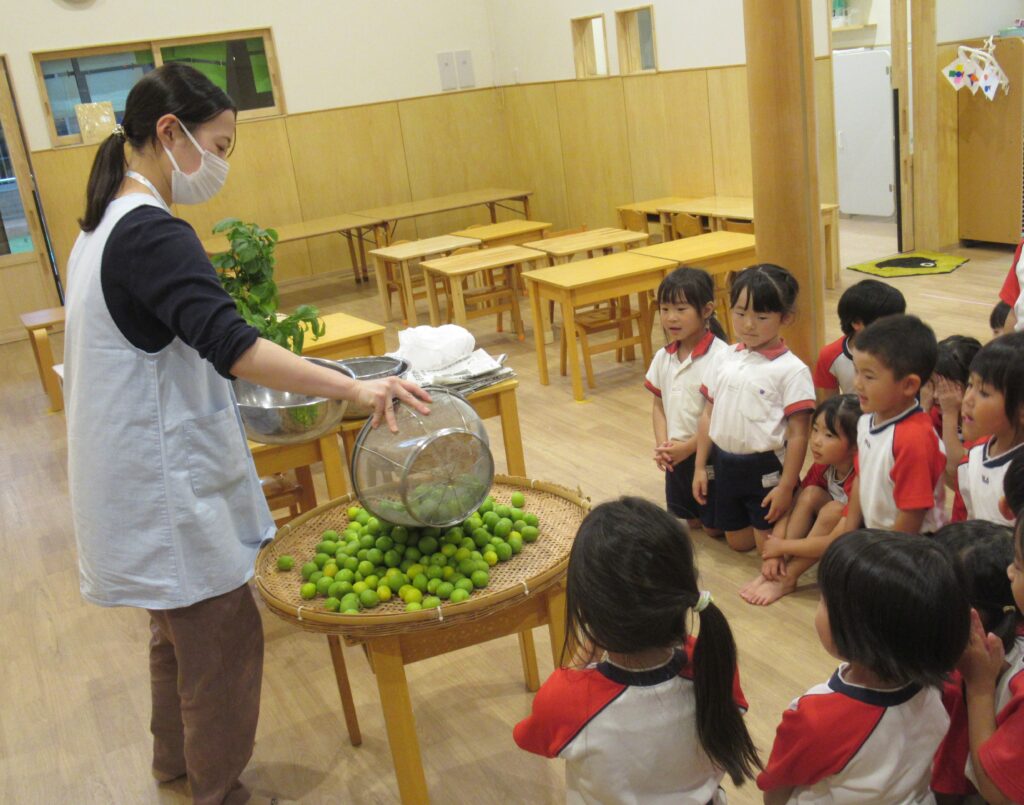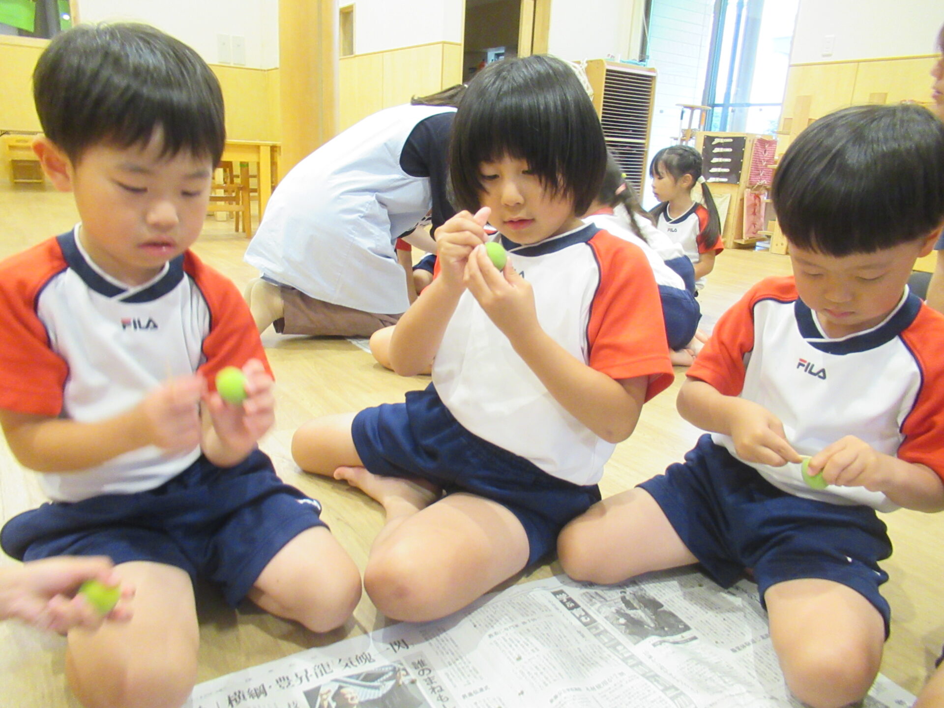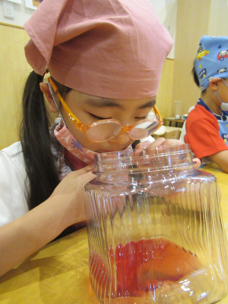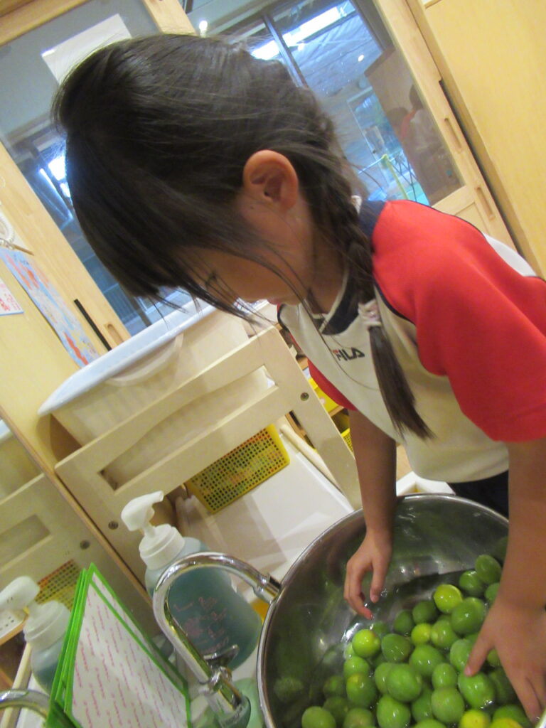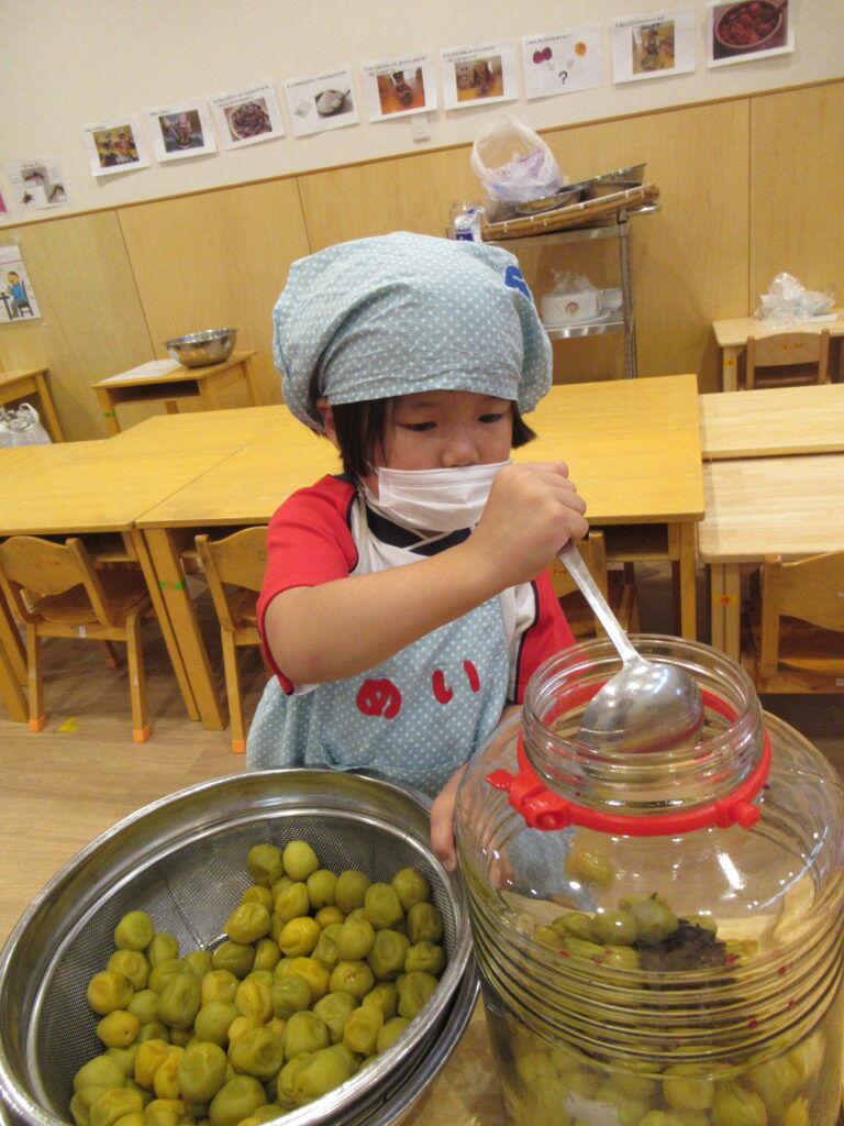 (給食室に置いていた梅を毎日見に来てくれたお友達もいましたよ♪)