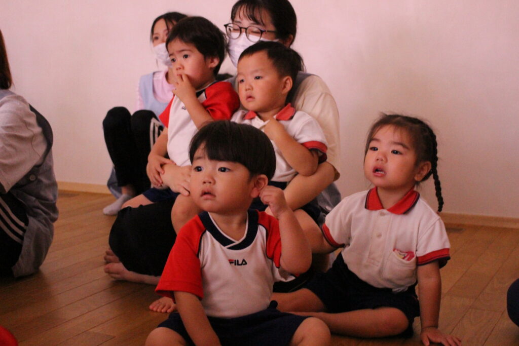 照明が消えると、いつものホールが劇場に変わりストーリーにどんどん引き込まれていく子ども達。